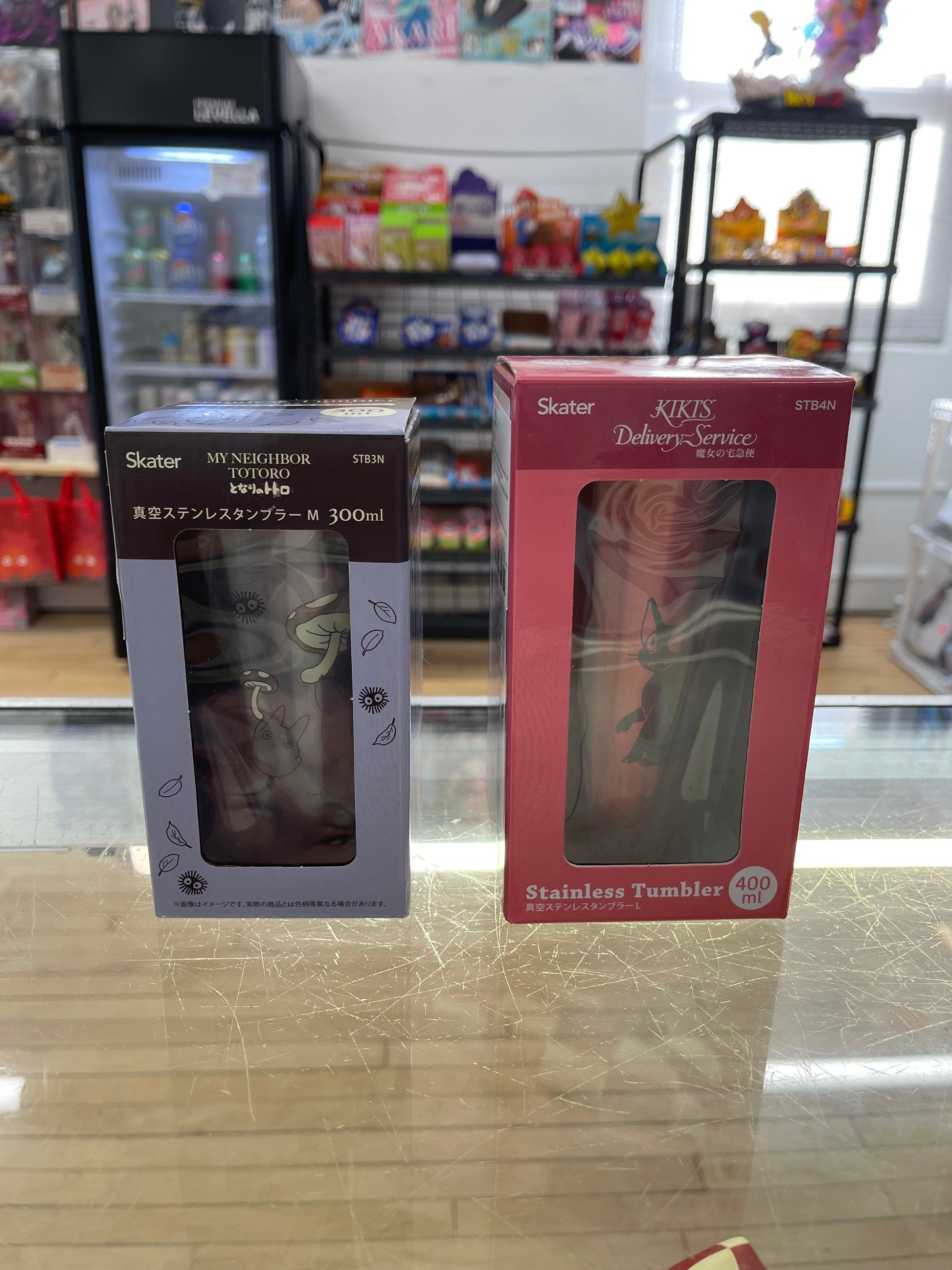 Enjoy drinking from a stainless tumbler! The cup has a mini Totoro flying from hanging onto a mushroom with fallen leaves.